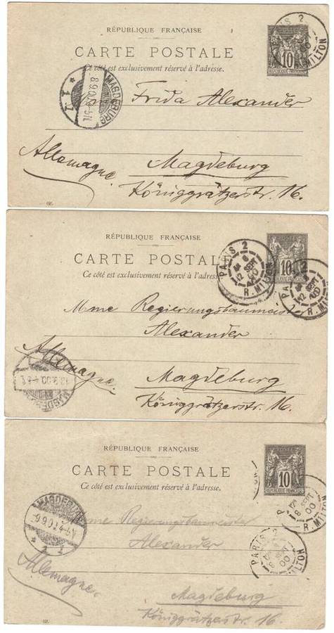 Postal History - Postcard Carte Postale, Paris to Magdeburg, Germany 1900 (x3)