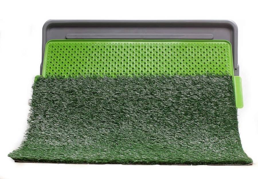 Grid tray, drains grass mat, keeping it away from urine
