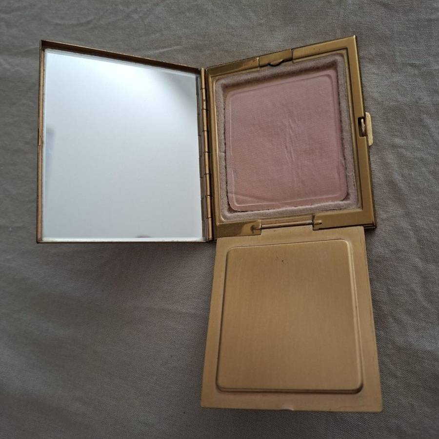 Interesting powder compact with a propeller aircraft on the top. It could be an vintage airways souvenir item. In good used condition. Some slight surfact marks. A well made item no makers name. Bevelled mirror.