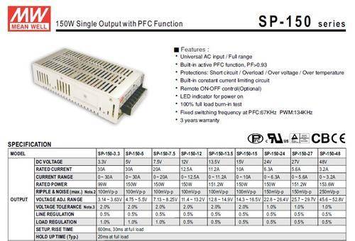 POWER SUPPLY 150W, 24V DC at 6.3Amp