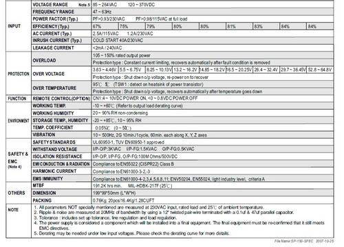 SPECIFICATIONS for POWER SUPPLIES / PSU