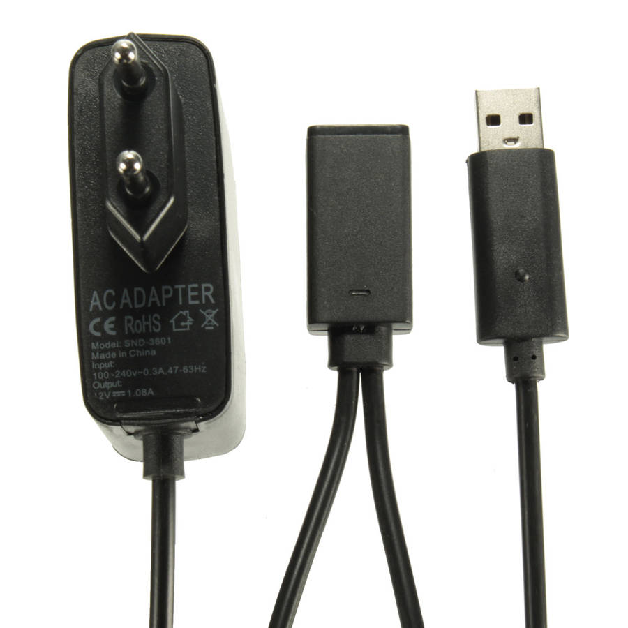 1. Color: Black 2. Input: 100V-240V 50/60 Hz 3. Output: DC 12V 1.08A 4. Plug standard: EU plug 5. Cable length: Approx. 230cm / 7.54ft Usage: USB port insert into Xbox 360.