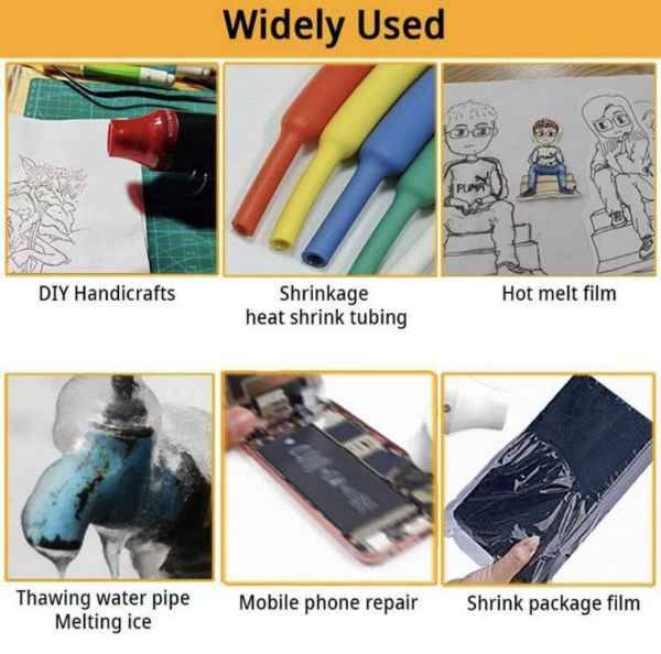 Versatile Applications: Wide Range of Uses: This fantastic heat gun excels in multiple applications, including heat shrink tubing, drying paint, paper, fabrics, craft foams, glue, ink, DIY projects, firm shaping, and clay work.
