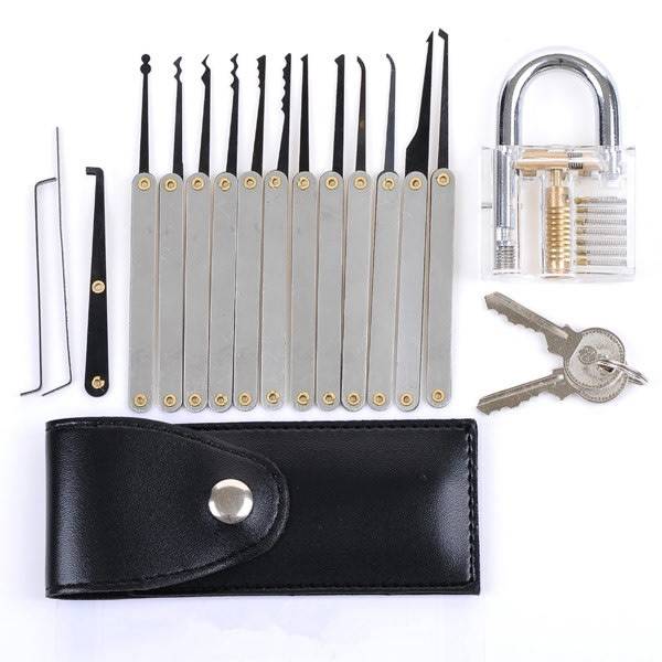 Practice Padlock with 12pcs Unlocking Lock Pick Set Key Extractor Tool Lock Pick Tools