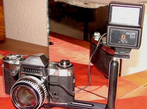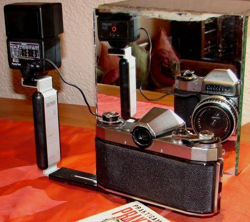 Included a Rowi extention handle with a Nissin 18 A Flash (not tested),