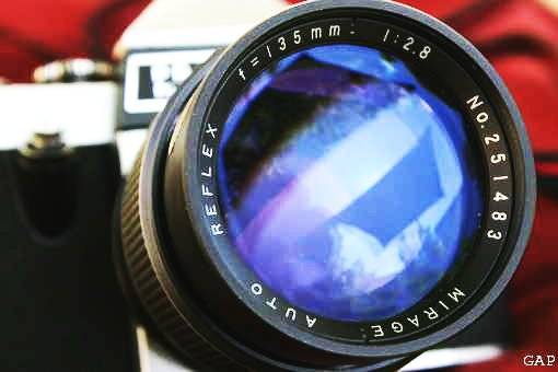 Praktica PL Nova 1 with Mirage Auto Reflex 135mm f2.8 Lens and Lens Hood. Uses M42 screw mount. Made in German Democratic Republic (GDR) All shutter speeds working, shutter fires solidly, good working order. Comes complete with carry bag.