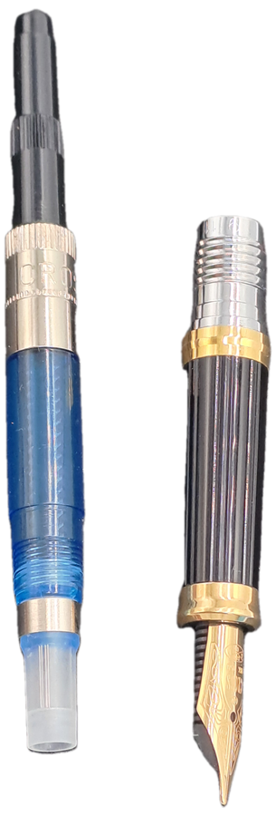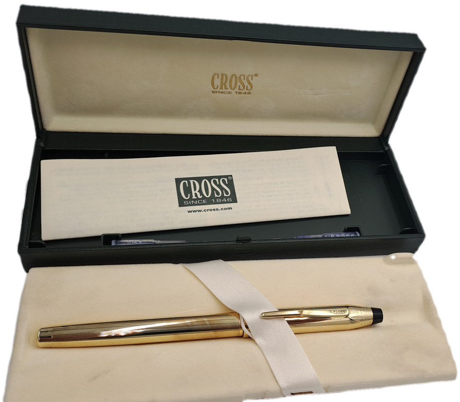 POSTAGE WILL BE COMBINED: Collection in Mondeor Johannesburg:Tip: To save on shipping -Buy more than one of My 1900+ ItemsPre-Owned 10kt Rolled Gold GROSS Fountain Pen with 18kt Gold Nip -Original Cross BoxedVery good condition ..No dentsPiston filling system18Kt Gold 750 STE ACT nib Please see ALL IMAGES - Multiple Images Uploaded - The pictures of the items form part of the description Due to the age of many of our Items there might be some Flaws and Imperfections.Colours depicted in the photos of items may differ from the actual colour of the items due to many factors including the light and the time of day that the photos are taken.I always try to get the description 100% correct with some research but can get it wrong sometimes ..i am not an expert. |