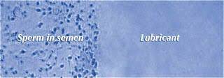 The picture below shows that normal lubricant creates a barrier that interferes with sperm.