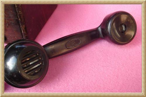 A lovely vintage pre- WW2 English made Dictograph Telephone System, of bakelite and wood, The handset rest is broken but the clicker works, The wooden box has age wear with six levers, one missing. Still a nice piece for display or restoration. Not working, box size 18cm x 16.5cm, height with receiver 21cm, weight 2653gsm.
