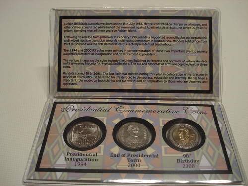 This set contains the three circulation Nelson Mandela R5 coins minted in commemoration of milestone achievements in his life: