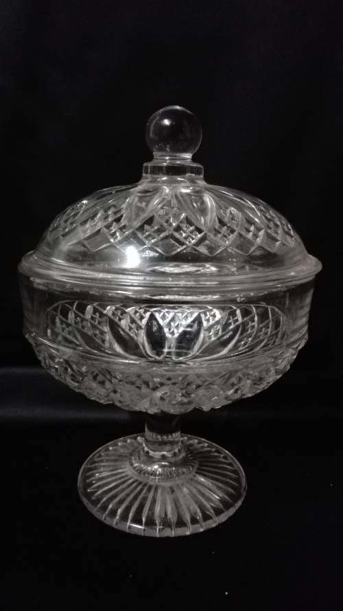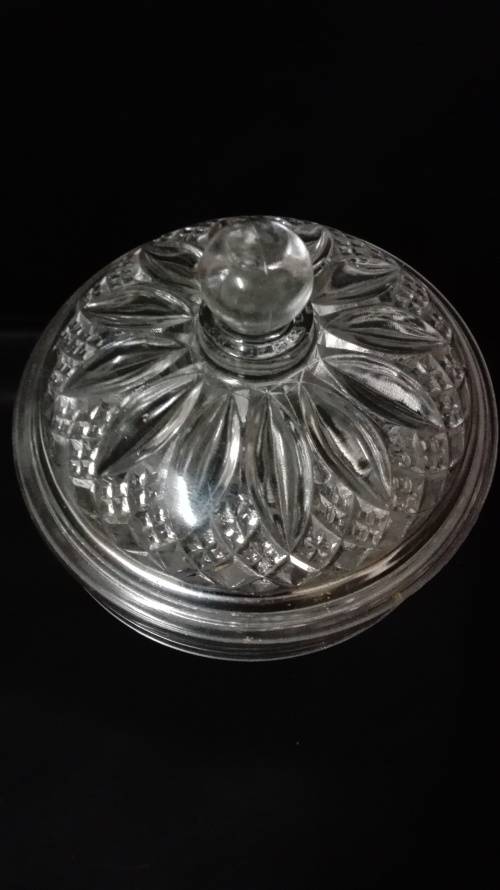 Stunning footted and Lidded pressed glass Trinket holder/ bonb bonn dish.