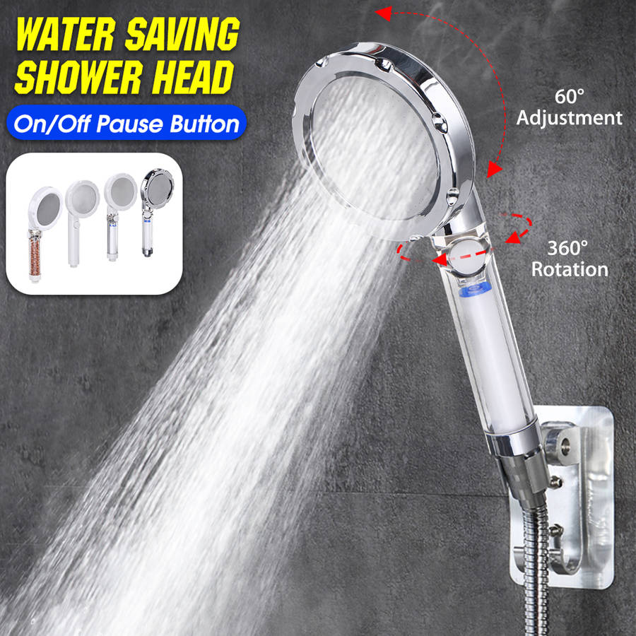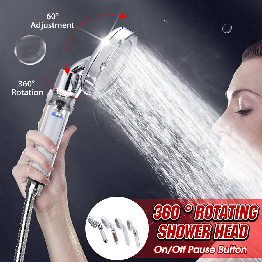 Pressure Boost Shower Head 360 Rotating Spa Rainfall Water Saving Filtration