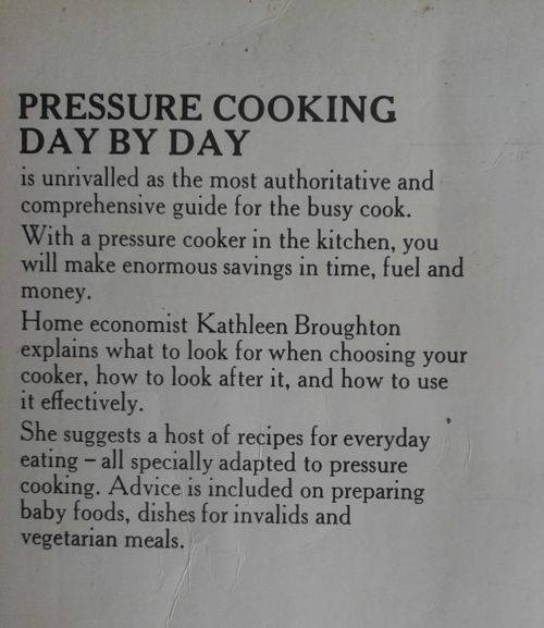 Pressure cooking day by day by Kathleen Broughton. Fair condition.