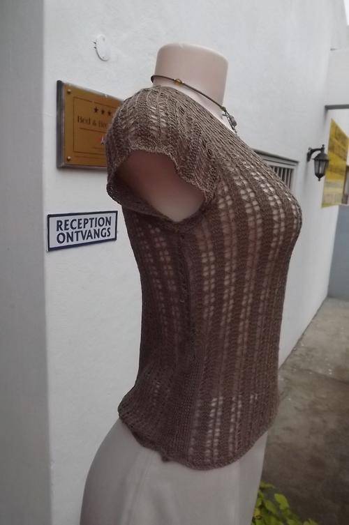 Pretty Acrylic Knitted Top in Taupe Colour - size 6/30 in as new condition - v-neck, short sleeves