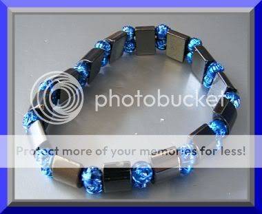 PRETTY HEMATITE AND BLUE BEAD STRETCHY BRACELET
