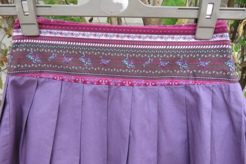 Pretty mauve colour knife pleated skirt for 11-12 yr old by TARGET with horizontal yoke.In violet and pink floral pattern.Same pattern wide seam border.Zip at side.`As new.