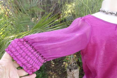 Pretty mexican pink sheer polyester top with lining by Cool Ice size 36/12.Blouson style
