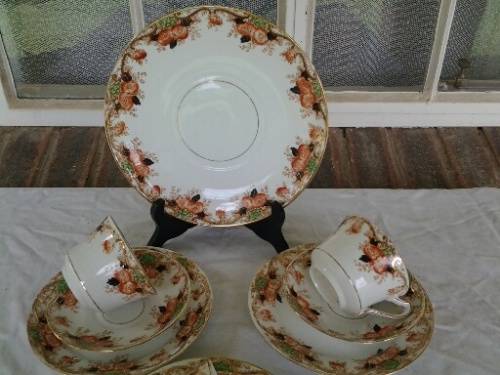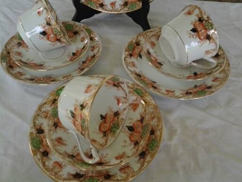 Pretty vintage part Royal Stafforshire  tea set items consist of three trios and cake plate all items are in good used condition no damage noted