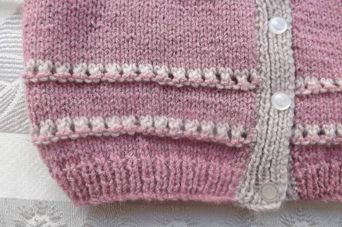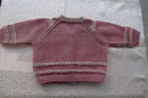 Pretty pink and beige cardigan for 12 month old girl.Hand knitted in acrylic wool.New condition.