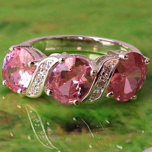 PRETTY PINK & WHITE QUARTZ RING IN SILVER