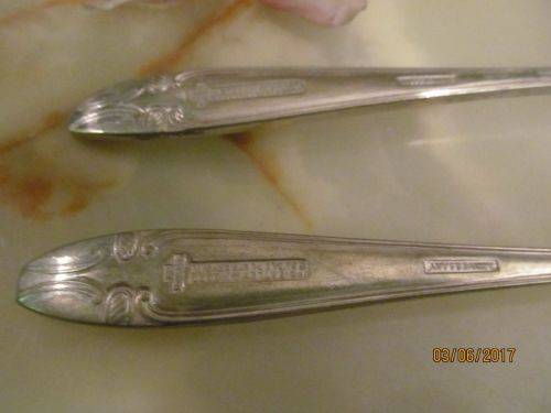 PAIR OF PRIESTLEY & MOORE SHEFFIELD COLLECTABLE "ANNIVERSARY" PATTERN DINNER / DESSERT SPOONS - VINTAGE DOUBLE PLATED A1