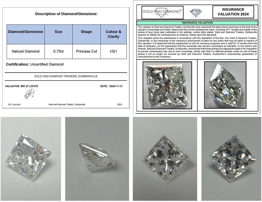 Princess Cut Natural Diamond 0,75ct I/Si1