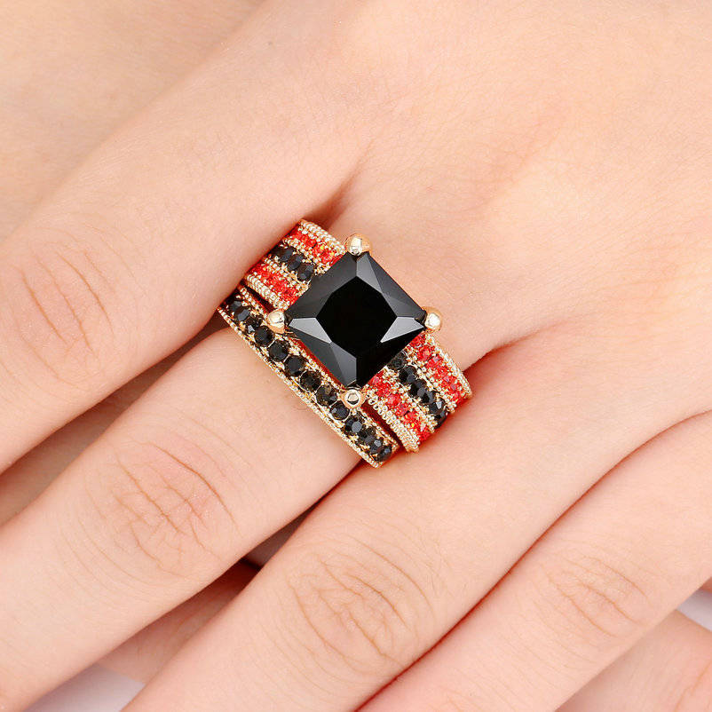 Princess Cut Sapphire Rings Set 10Kt Yellow Gold Filled Size 6 Princess Cut Sapphire Rings Set 10Kt Yellow Gold Filled Size 6