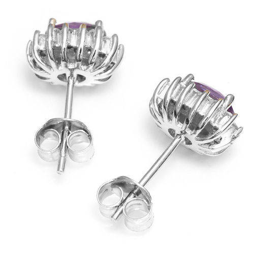 These beautiful Lab created Alexandrite Sapphire stud earrings are set in rhodium plated .925 sterling silver.