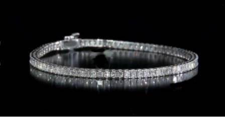 This sterling silver Created Diamond tennis bracelet features dazzling princess cut Created Diamonds,