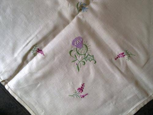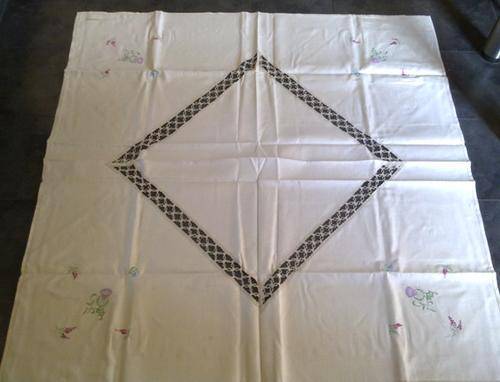 Attractive hand embroidery on each corner and a crochet insert centre square.