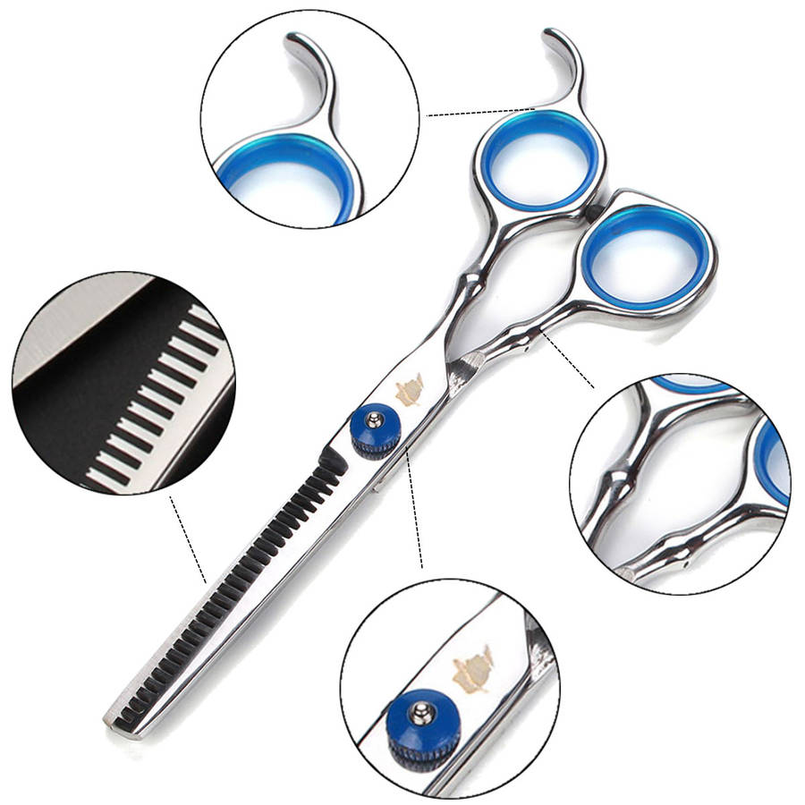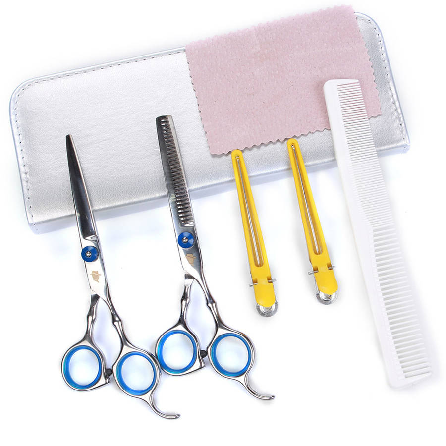 Package Includes: 1 X Thinning Scissors 1 X Barber Scissors 1 X Barber Hair Comb 1 X Skin Rub 2 X Hairpin 1 X PU leather packing bag
