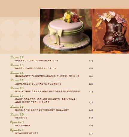 Subsequent chapters cover decorating techniques including Basic, Intermediate, and Advanced Piping Skills, The Art of Writing and Painting, Royal Icing Design Skills, Hand Modeling Skills, Pastillage Construction, Gumpaste Flowers, and much more.