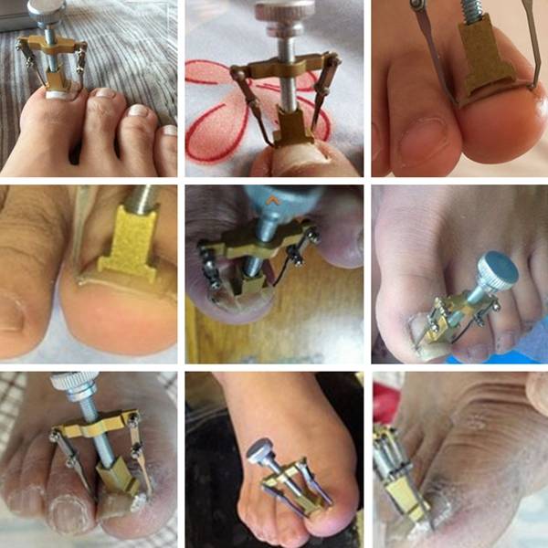 2. Hook both sides of the ingrown toenail with the two hooks on the equipment.