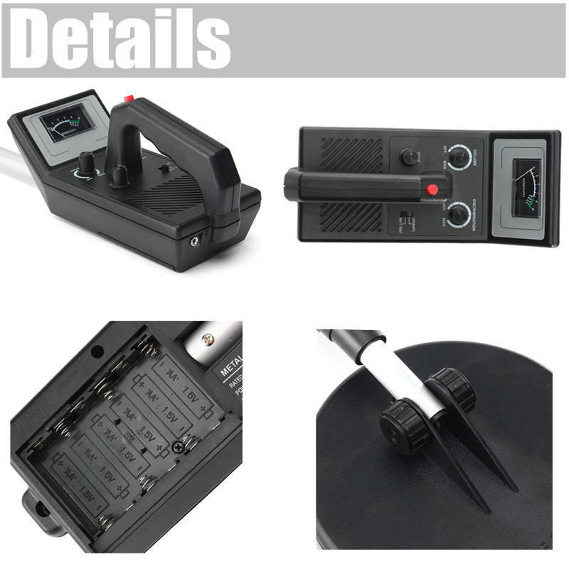 Features: 1. Volume 2. One-touch auto-turn 3. Ferrous/non-ferrous discrimination 4. Tune control 5. Battery test 6. 1/8" earphone jack 7. Extendible metal shaft For Gold Nuggets proispecting, Coins and Jewelery Searching, burried treasure hunting... On land or in shallow water.