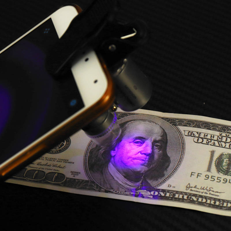 Package weight: 0.04 kg Specifications: - Model: 9882W1 - Material: ABS (Acrylonitrile Butadiene Styrene) + Metal - Height: Approx. 7cm/ 2.76" - Magnification: 60x - Battery supply: 3 LR1130 batteries(included) - Light Source: 1 x LED White Light, 1 x Purple Light Features: - 60X zoom microscope magnify lens for universal phones. - Optical coated lenses, clear imaging, no damage to vision, eyepiece thread knob design, clip removable, can be used to observe directly - Clip plus sponge protection so the phone is not scratched - Pure white high brightness, led light and UV currency detection light. - With a small pocket bag, convenience to carry, you can use it in everywhere and every time. - Suitable for jewelry, currency, coins,stamp, medicine, circuit board and printing industry, gardening, home and office, industrial purpose,education, geography and so on. Package Included: - 1 x Magnifier - 1 x User Manual More details:
