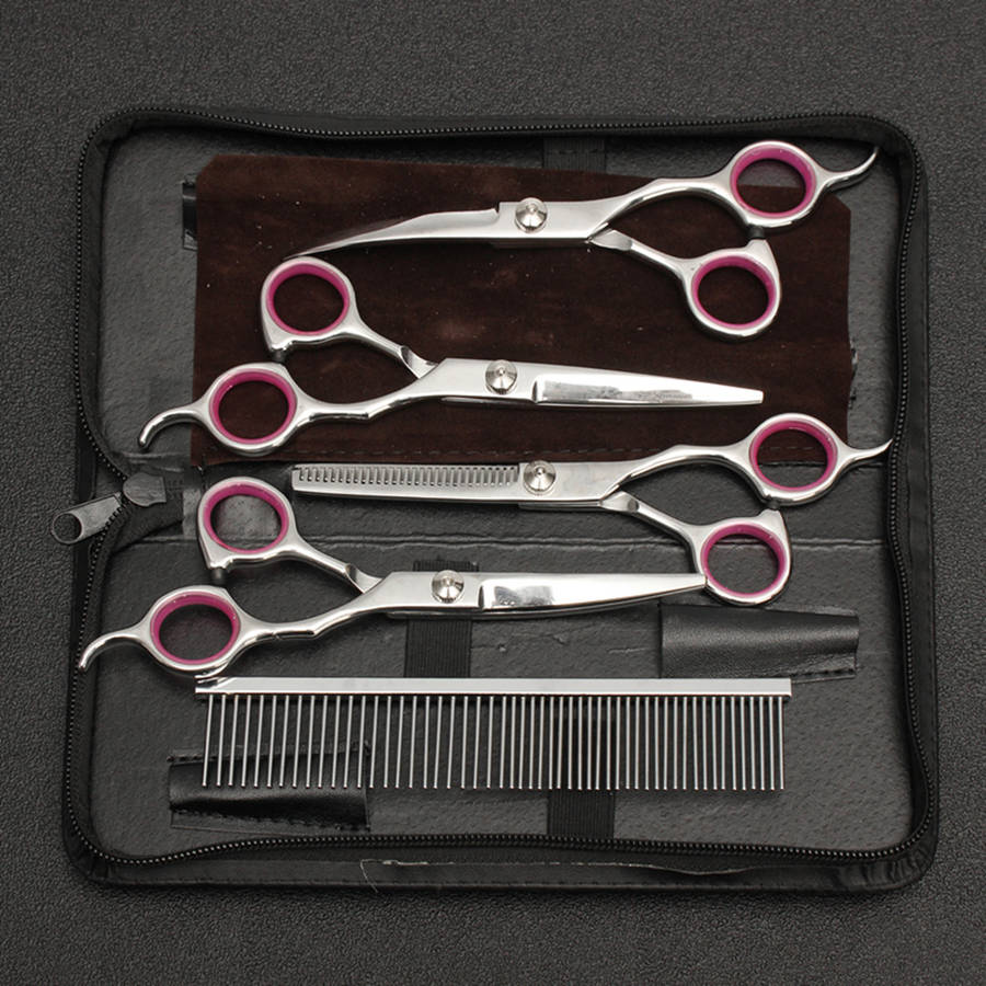 Professional Pet Dog Hair Cutting Scissors 6 Grooming Kits Curved Shears Tool"