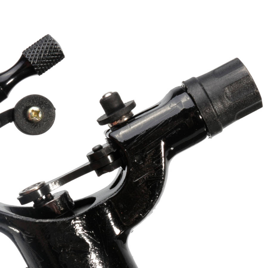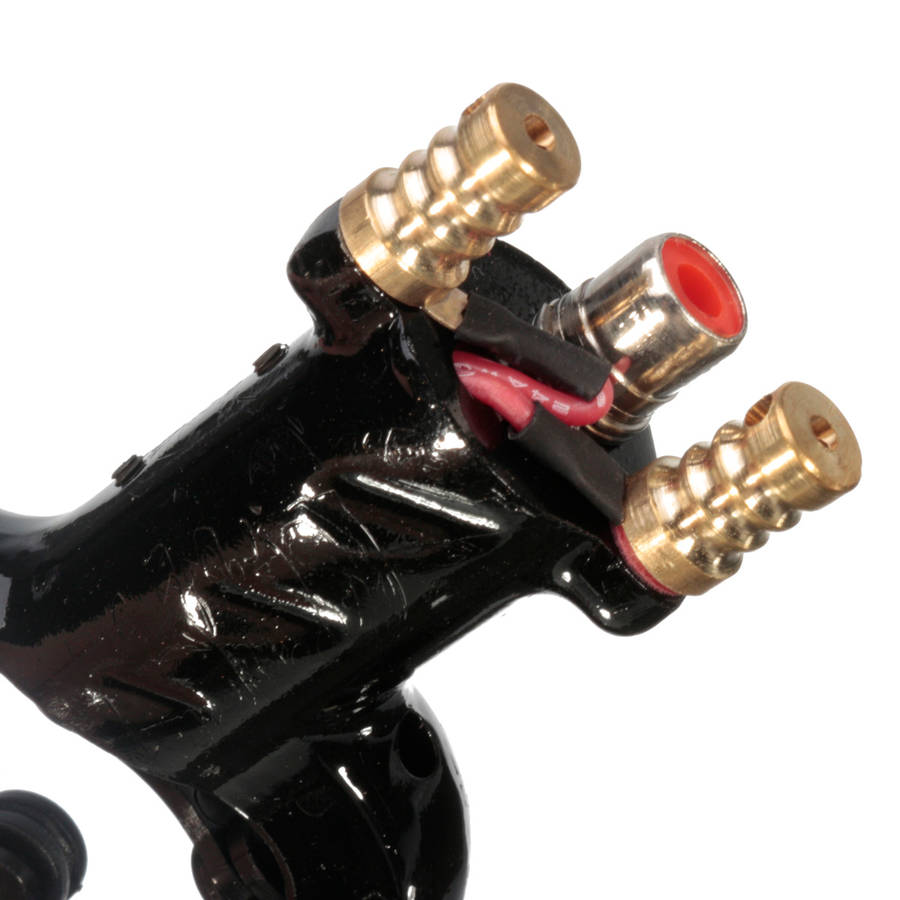 Package weight: 0.12 kg Feature: - Silent, low vibrating and low heating - Excellent stability and feeling - Great for lining, shading and filling Specification: Color: Black Input voltage: DC 0-14V (Max. DC 14V) Power connection: clip cord (Max. clip cord end diameter is 1.6mm.) Speed range: 0-8000 R/M, 0-130R/S Stroke length: 3.7-5mm Suspension stroke: 0-2mm Tube diameter: 8mm (Max.) Needle size: 50 magnum (Max.) Package Included: 1 x Tattoo machine part 2 x Fittings
