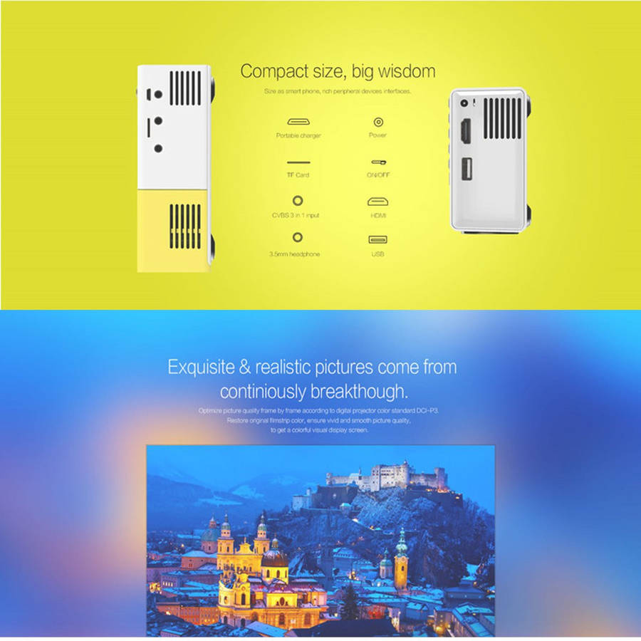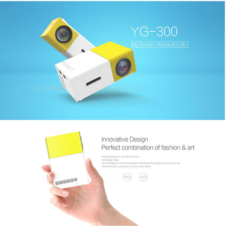 YG-300 LCD Projector is a multimedia player with 320 x 240 pixels, visible 400 - 600 lumens and 800:1 contrast ratio. With this small but high performance projector, you can enjoy the high-quality images and videos in a very comfortable position.