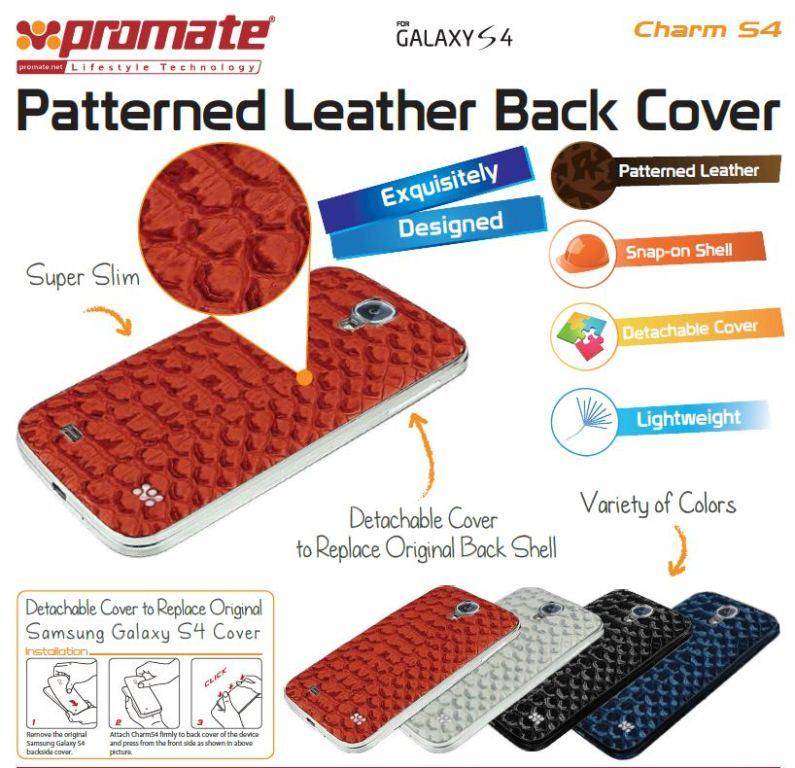 Promate Charm.S4 Premium Patterned-Leather Back Cover-for Samsung Galaxy S4-Black , Retail Box, 1 Ye