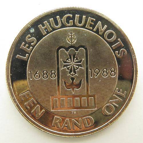 PROOF!!! 1988 South Africa Silver R1 HUEGENOTS 1688 -1988 - SILVER
