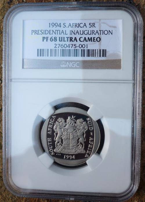 1994 MANDELA ULTRA CAMEO INAUGURATION PROOF 68 R5 COIN !!! PERFECT GEM !!! GRADED PF68 BY NGC !! HIGHLY COLLECTABLE !! ULTRA SCARCE !! Picture of actual coin and serial number you will recieve GENERAL TERMS & CONDITIONS: