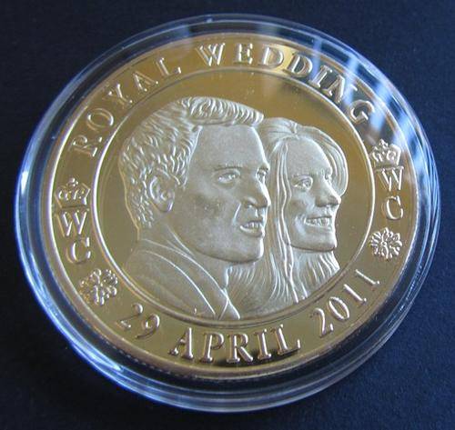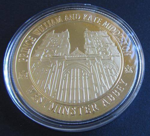 Beautiful Proof Medallion commemorating the Royal Wedding of Prince William and Kate. Gold Plated.