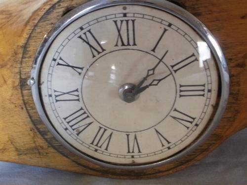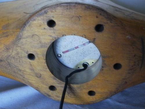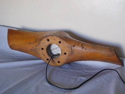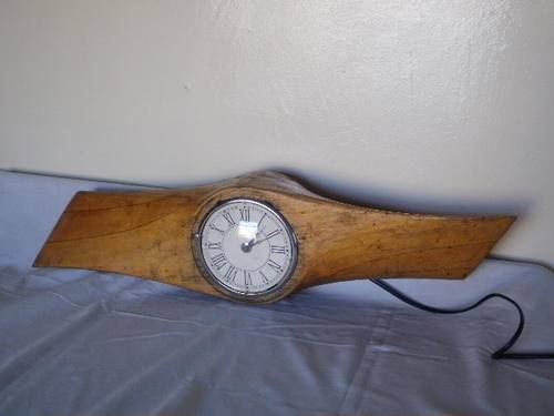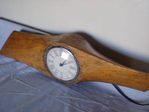 A WOODEN PLANE PROPELLER OF WWI OR WWII BEING TRANSFORMED INTO A ELECTRIC CLOCK.