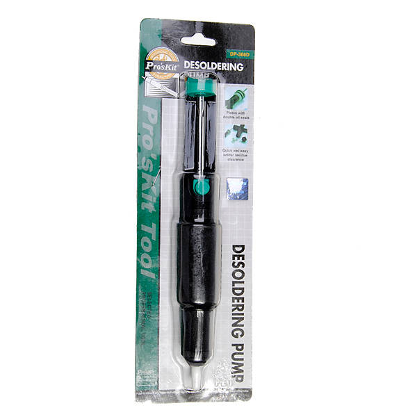 Description : Pro'sKit DP-366D Lightweight Handheld Desoldering Pump Piston With Double Oil Seals Brand : Pro'sKit Model : DP-366D Color : Black Material : ABS Ideal desoldering tool for circuit board repairing. Piston with double oil seals : no air leakage guarantee; replacement tip, soft handle. After using the internal spring pull design, momentary holding strong suction, suction up 32Hg-cm. Soft non-slip handle design, smooth operation is not slippery, more comfortable grip. Replaceable tip, affordable, easy to operate, easy to clean. Package included : 1 x Pro'sKit DP-366D Desoldering Pump Details pictures :