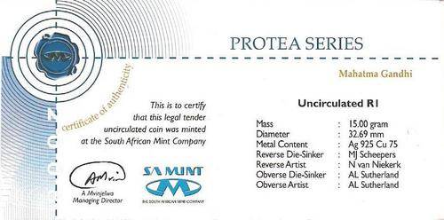 Protea Series - Uncirculated R1 Mahatma Ghandi Sterling Silver