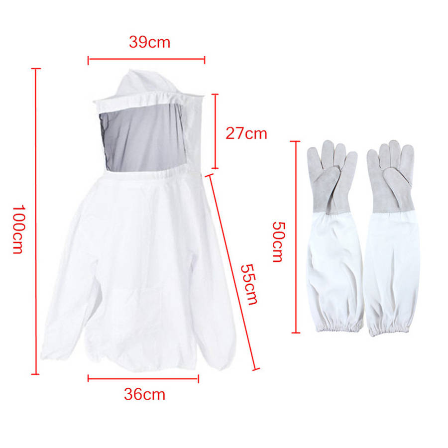Protective Bee Keeping Jacket Veil Suit +1 Pair Beekeeping Long Sleeve Gloves