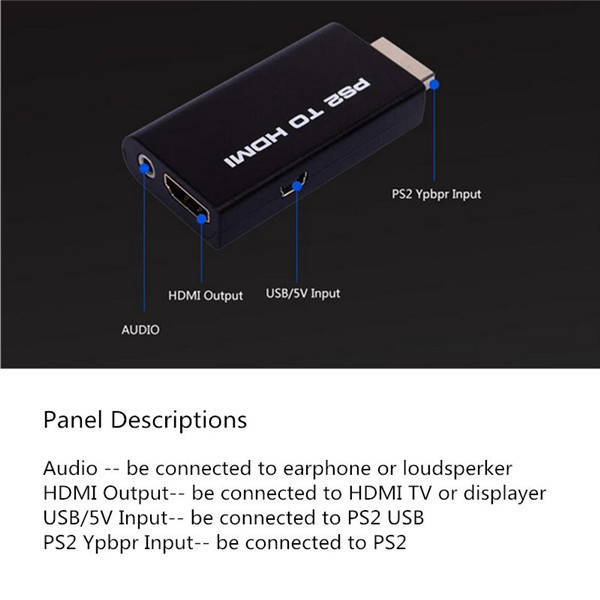 PS2 to HDMI Video Converter Adapter with 3.5mm Audio Output for HDTV HDMI 1080P Support 480i 576i 480p