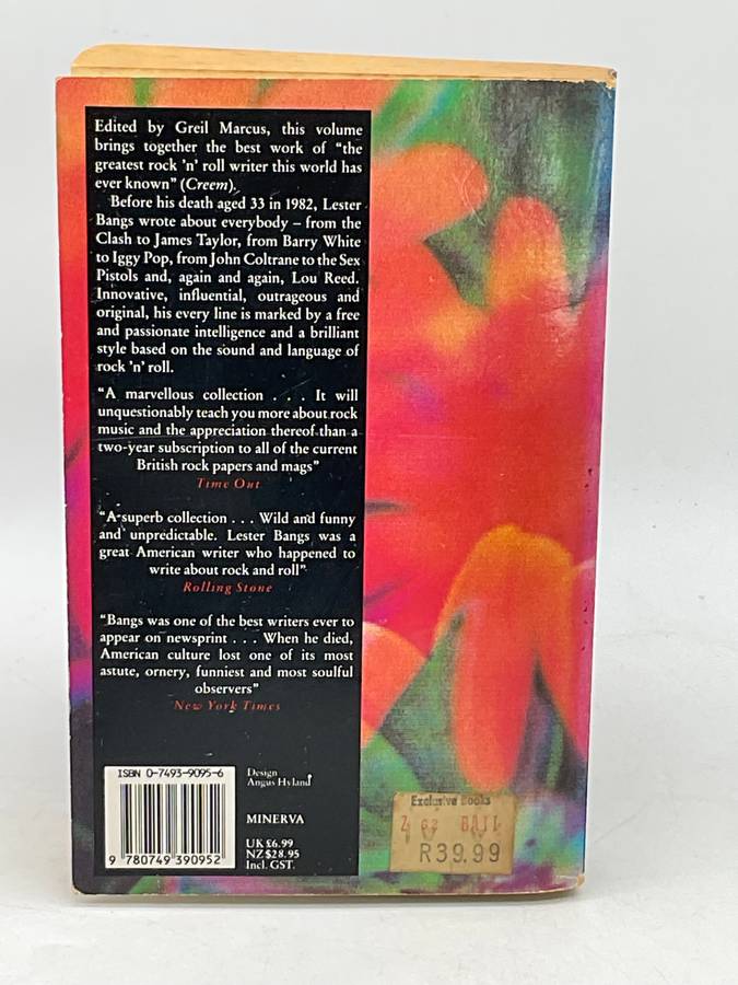 The Work of a Legendary Critic: Rock 'n' Roll as Literature and Literature as Rock 'n' Roll,' "Until his death in 1982 at age 34, Bangs wrote freewheeling rock 'n' roll pieces for Creem, Rolling Stone, the Village Voice and London's NME (New Musical Express). As a rock critic, he was adept at distinguishing the commercially packaged product from the real thing. Written in a conversational, wisecracking, erotically charged style, his impudent reviews and essays explore the connections between rock and the body politic, the way rock stars cow their audiences and how the pursuit of success and artistic vision destroys or makes rock performers as human beings. This collection covers Mick Jagger, John Lennon, David Bowie, Iggy Pop, the Troggs, Lou Reed, Van Morrison, Chicago, the Clash, many more.