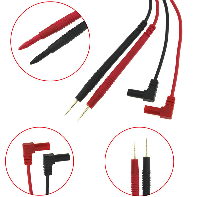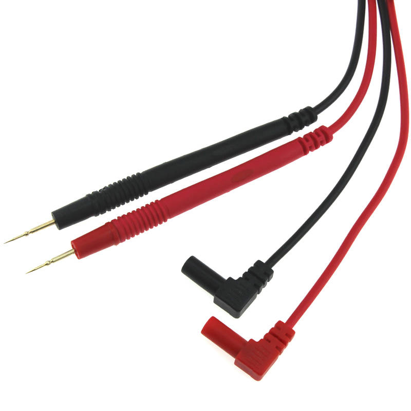 Specification: Model:PT1002 Cable Length: 80cm Total length: 94cm Cable Diameter: 4.0mm Cable Specifications: 0.15mm x 50 core Jacket: elastomer plastic Safety requirements: CAT II 1000V 10A Pen Tip Material: beryllium copper Pen Tip Plating: 24K Gold plated Pen Tip diameter: 0.2-0.3 mm Package included: 1 xPT1002Pair of Multimeter Test Probe Details pictures: