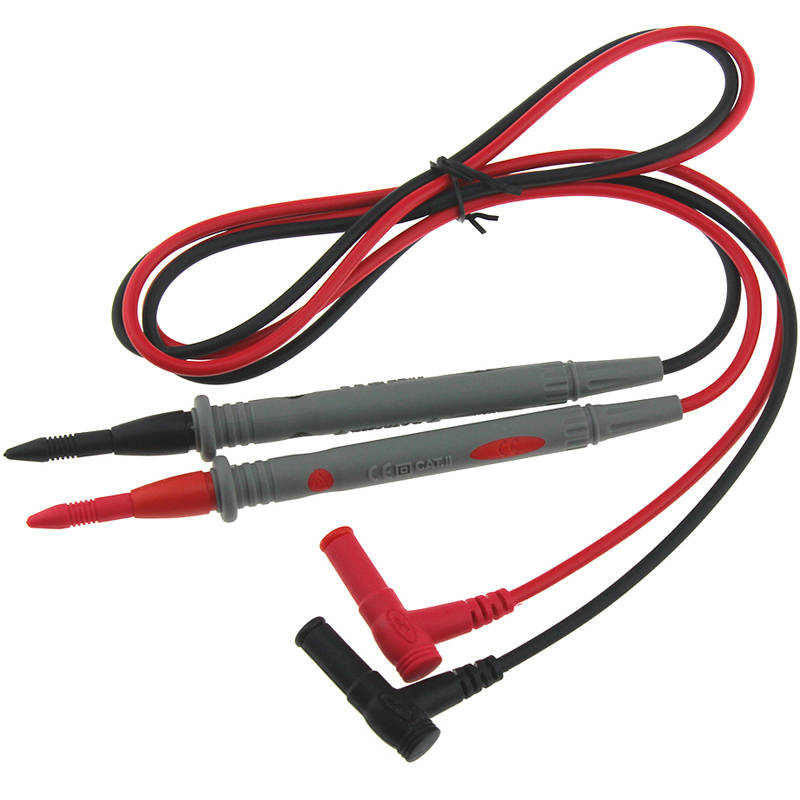 Specification: Model:PT1004 Cable Length: 93cm Total length: 108cm Cable Diameter: 4.0mm Cable Specifications: 0.15mm x 50 core Jacket: elastomer plastic Safety requirements: CAT II 1000V 10A Pen Tip Material: beryllium copper Pen Tip Plating: 24K Gold plated Pen Tip diameter: 0.2-0.3 mm Package included: 1 xPT1004Pair of Multimeter Test Probe Details pictures: